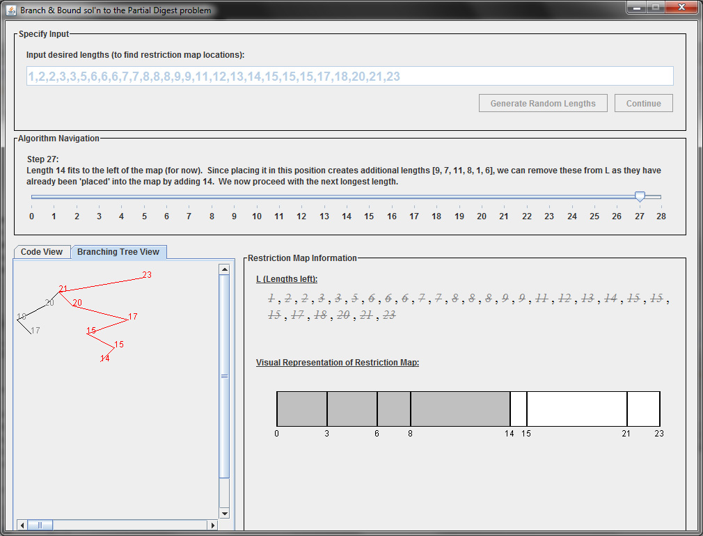 I attempted to solve this problem by developing a learning tool which allowed students to interactively run through difficult bioinformatics-related algorithms step by step while simultaneously showing what the algorithms – and their related data structures – are doing via interactive visualizations. The most challenging aspect to this project was unraveling the algorithms in such a way that it is easily comprehensible to students while still maintaining the integrity of the algorithms itself; in the end, I wrote three interactive visualizations in Java which focused on the branch and bound algorithm for the partial digest problem, the bounded algorithm for the median string problem, and the dynamic programming solution to the longest-common-subsequence alignment problem. Based on preliminary evaluation with my peers, the learning tool was a success, and would be well suited for even novice programmers.